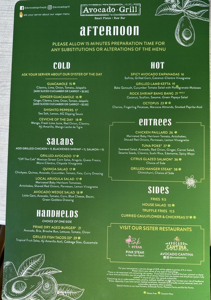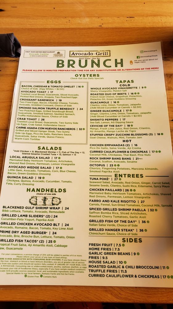 Introducing the menu at Avocado Grill, located in West Palm Beach, FL, offers a variety of tapas, seafood small plates, and delicious brunch options. From the flavorful Roasted Duo of Beets to the refreshing Local Arugula Salad, each dish is crafted with care and attention to detail. The Avocado Toast is a must-try, featuring guacamole, sliced avocado, and perfectly poached eggs on toasted local bread. Customers rave about the amazing food and service, with highlights like the ginger guacamole and quinoa salad standing out. With a trendy and casual atmosphere, Avocado Grill caters to a wide range of dietary preferences, including vegan and vegetarian options. Whether you're looking for a quick bite or a leisurely meal, Avocado Grill offers a memorable dining experience.